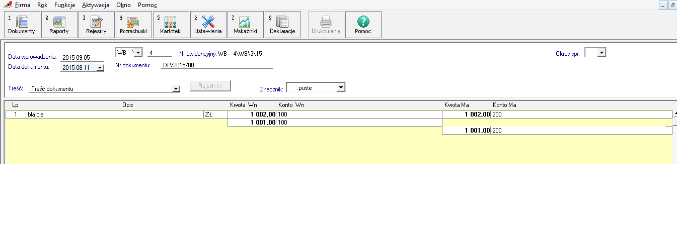 dok.next(1) dok.SetField(1, "kwota", 1002) dok.SetField(1, "strona", 1) dok.SetField(1, "synt", 200)