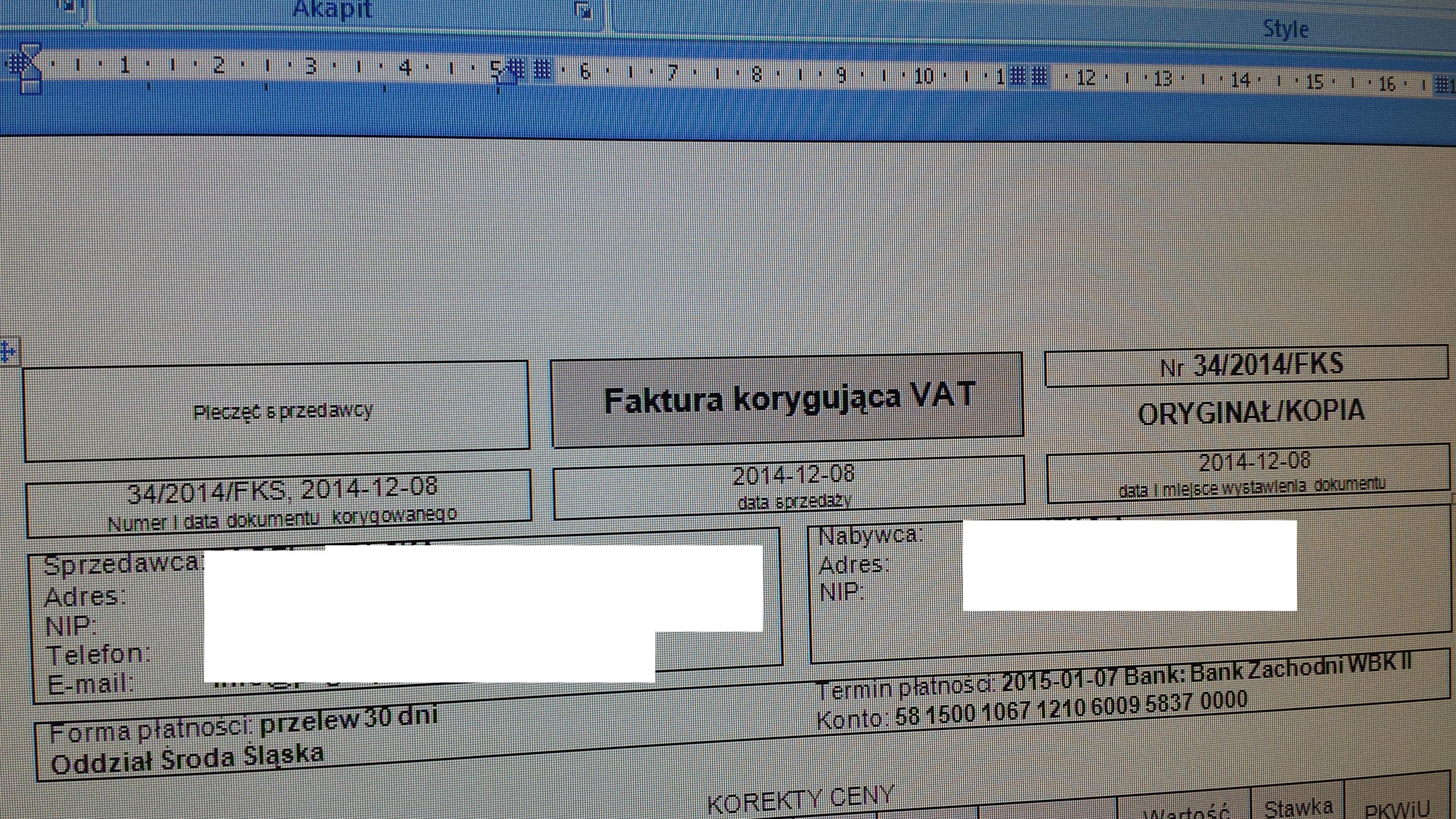 Re: Faktura korygujaca