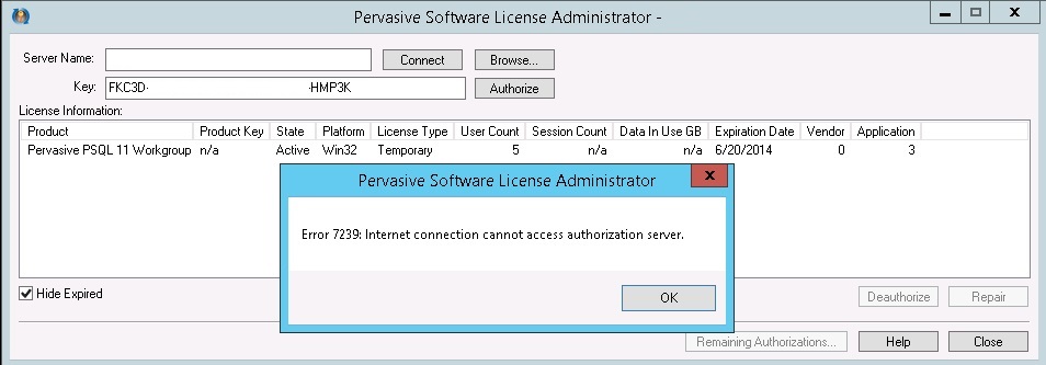 Re: Pervasive 11 nie można dodać licencji