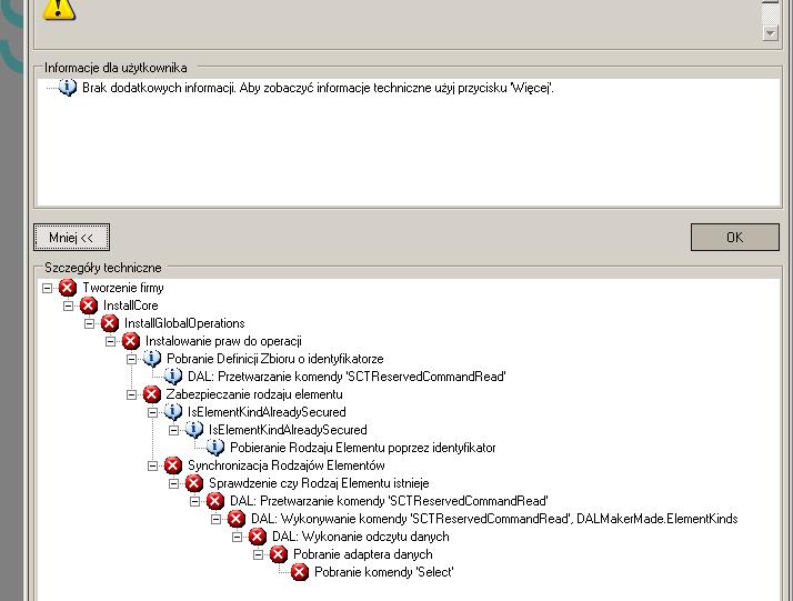 iredy pisze: Witam, jak w temacie, już mi ręce opadają - przeinstalowałem wszystko od nowa (od SQLa poczynając) i dalej - po zainstalowaniu KDF, próba stworzenia nowej firmy kończy się czymś takim i porażka. Co jest nie tak? Jakoś komunikaty nie bardzo mnie naprowadzają.