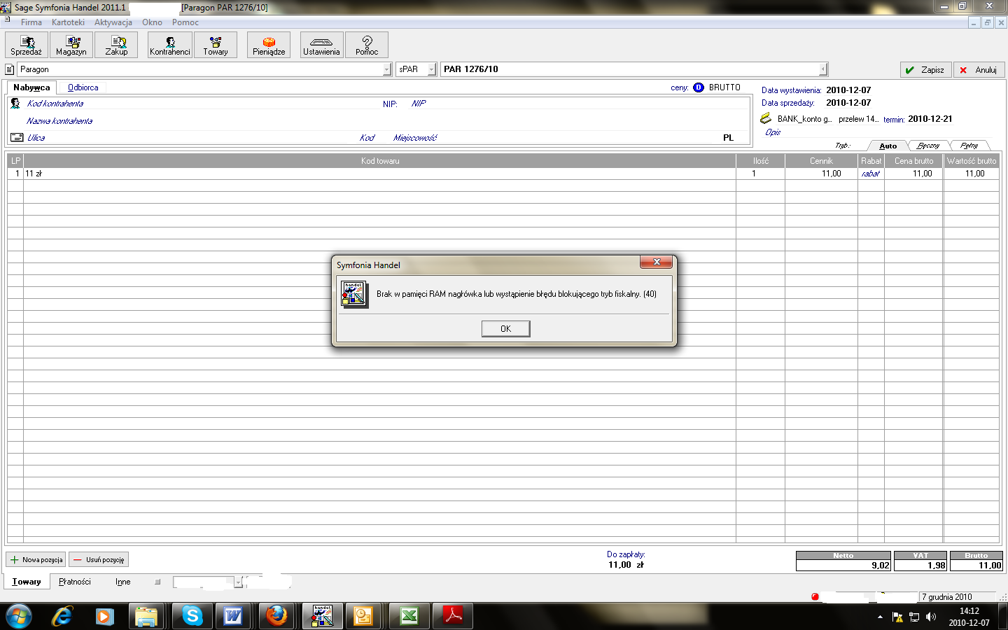 PRoblem z drukarką fiskalną - Błąd przy fiskalizacji