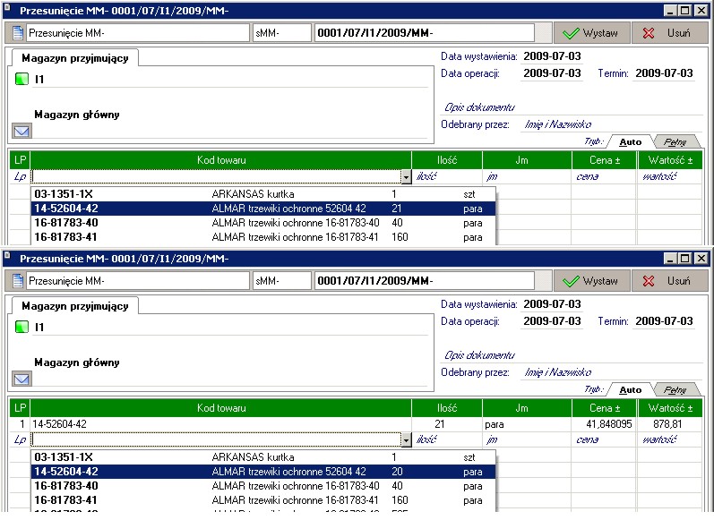 [HMF2009a] Błąd listy towarów w dokumentach?