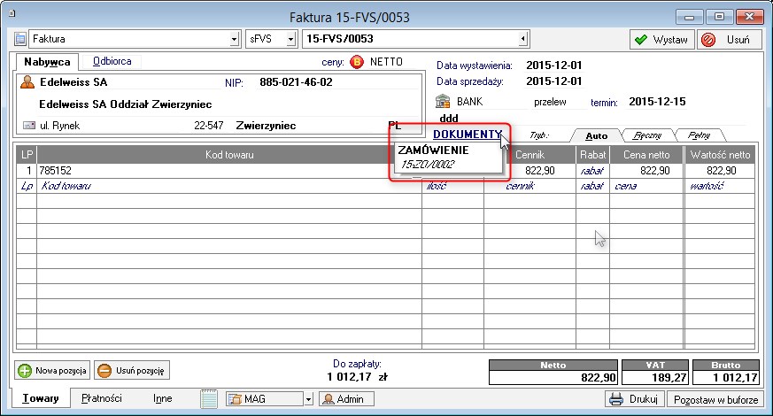 Zwiększenia ilości lub uzupełnienia o nowe towary należy dokonać edytując dokument Pro Forma przed przystąpieniem do wystawiania dokumentu sprzedaży.