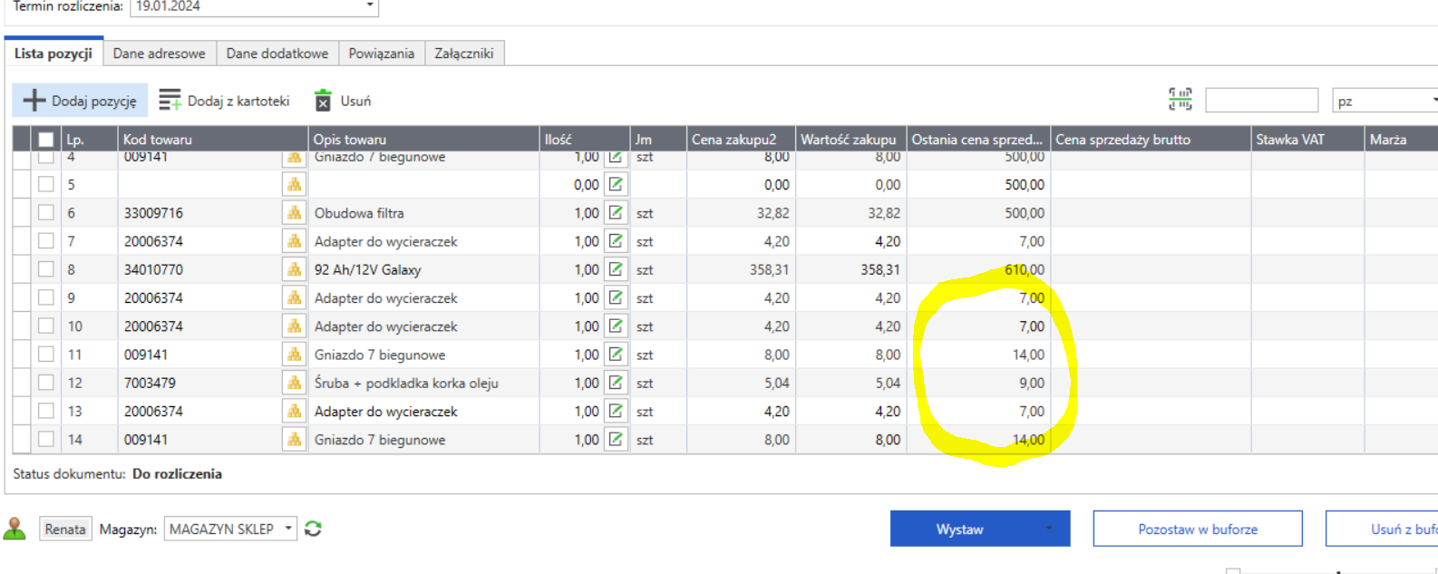 HANDEL ERP 2024 Dodatkowe kolumny na liniach/pozycjach pz