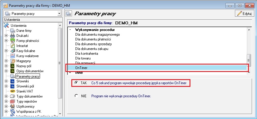 OnAfterInsert = SprawdzOkresNumeracji(lId, BAS_DK) EndSub W raporcie Raporty -> Procedury -> Procedura OnTimer ZNAJDŹ Kod: int sub OnTimer() OnTimer = 0 endsub ZAMIEŃ NA Kod: int sub OnTimer()