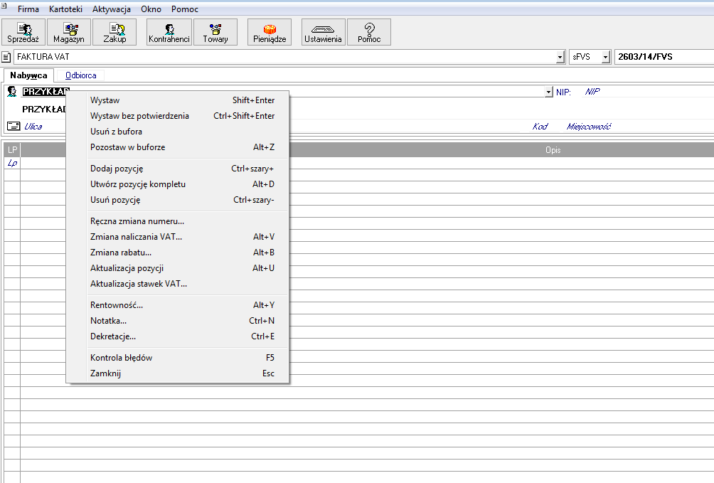 Funkcja dostępna pod prawym klawiszem myszy w kartotece towarów i kontrahentów