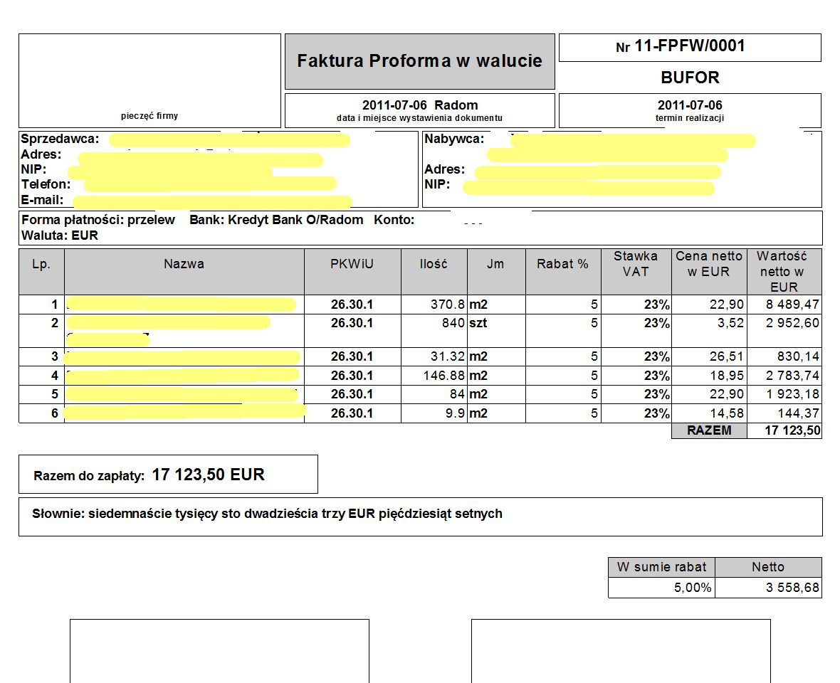Faktura Pro forma jest zwykłą fakturą w buforze