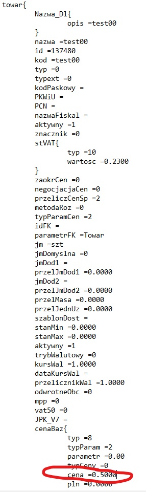 wyeksportuj jakiś istniejący towar i zobaczysz jak wygląda plik