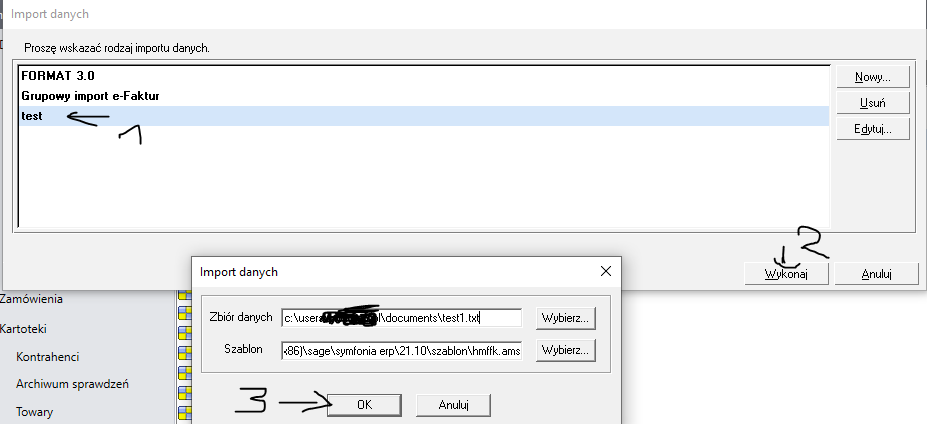 Podaj nazwę i plik szablonu importu *.AMS (chyba hmfin.ams)