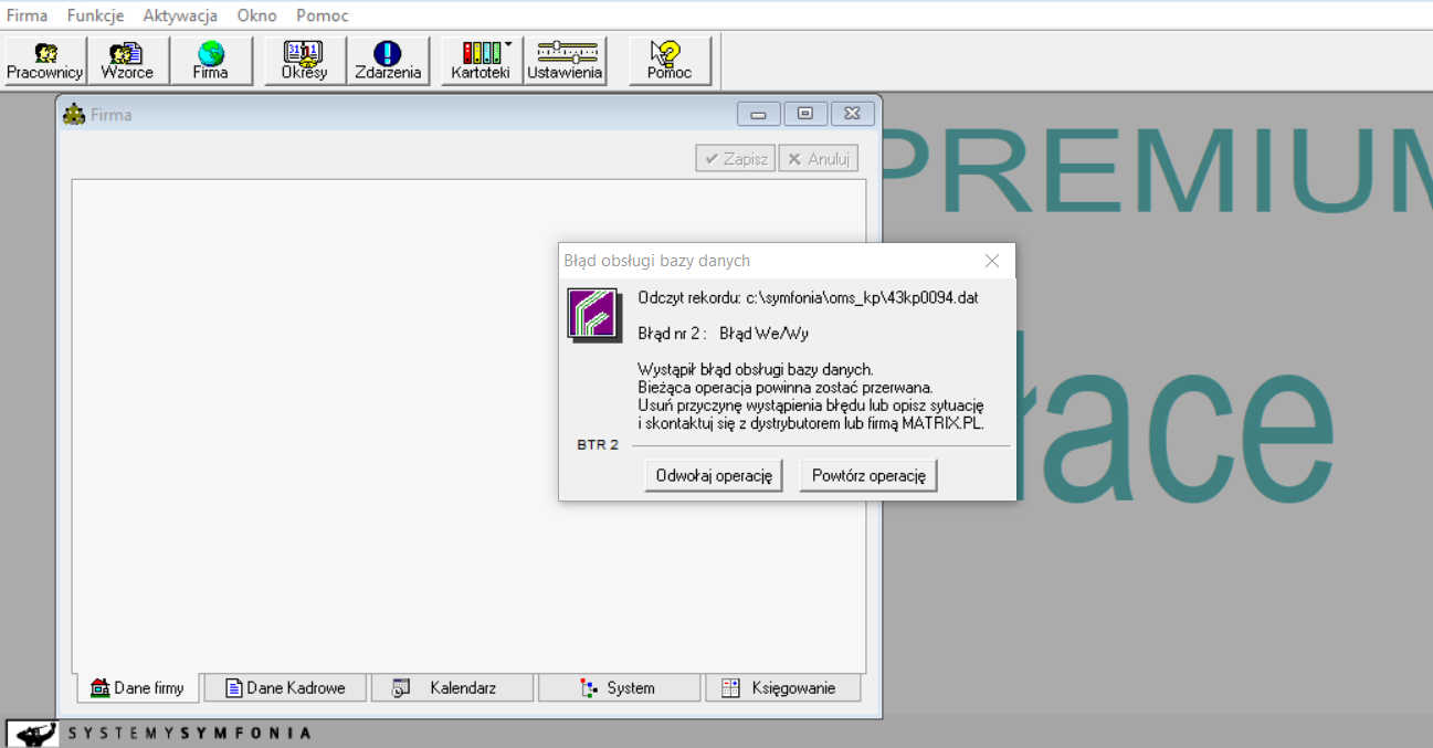 Post Kadry Płace Premium 3,42a błąd bazy nr 2