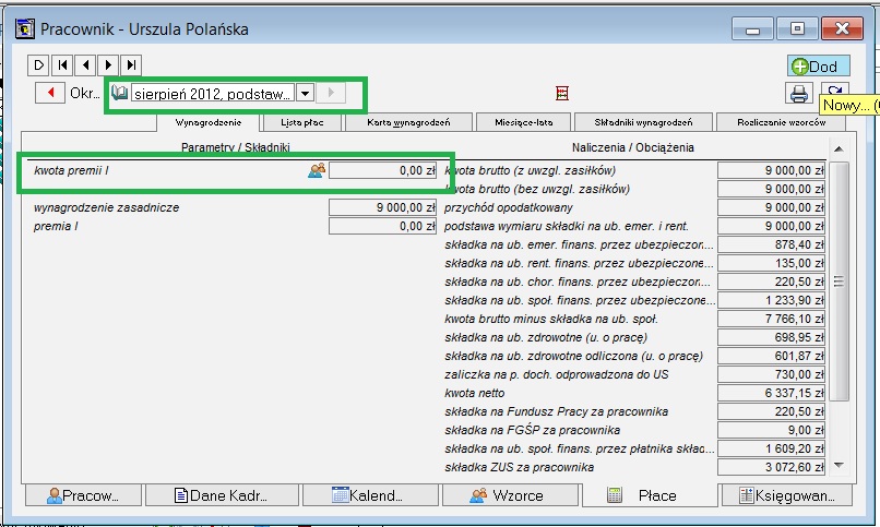 No to w takim razie robię jakiś błąd, bo dodałam pracownikowi wzorzec Premia I, który obowiązuje od 2012-07-01, bez daty końcowej, we wzorcu wprowadziłam w danych kadrowych kwotę premii I = 700 - od dnia 01-07-2012, bez daty końcowej.