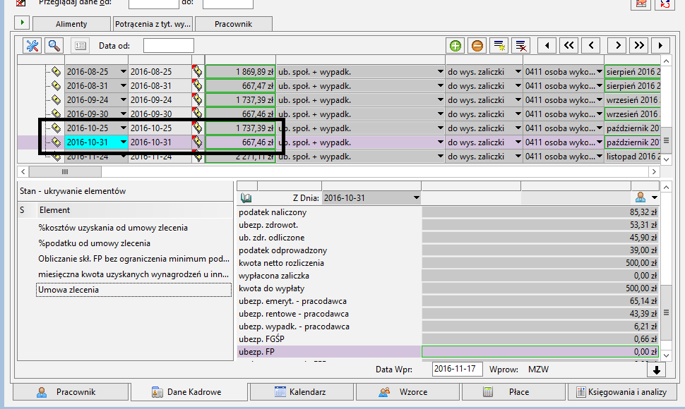 Witam, mam problem z naliczeniem FP dla pracownika, który ma umowę cywilnoprawną. Dodam, że w jednym miesiącu naliczyło mu się FP natomiast w innym nie i może ktoś podpowie jaka jest przyczyna. Pracownik w jednym miesiącu ma dwie wypłaty, które przekraczają minimalne wynagrodzenie, więc powinna naliczyć się składka FP. Załącznik: