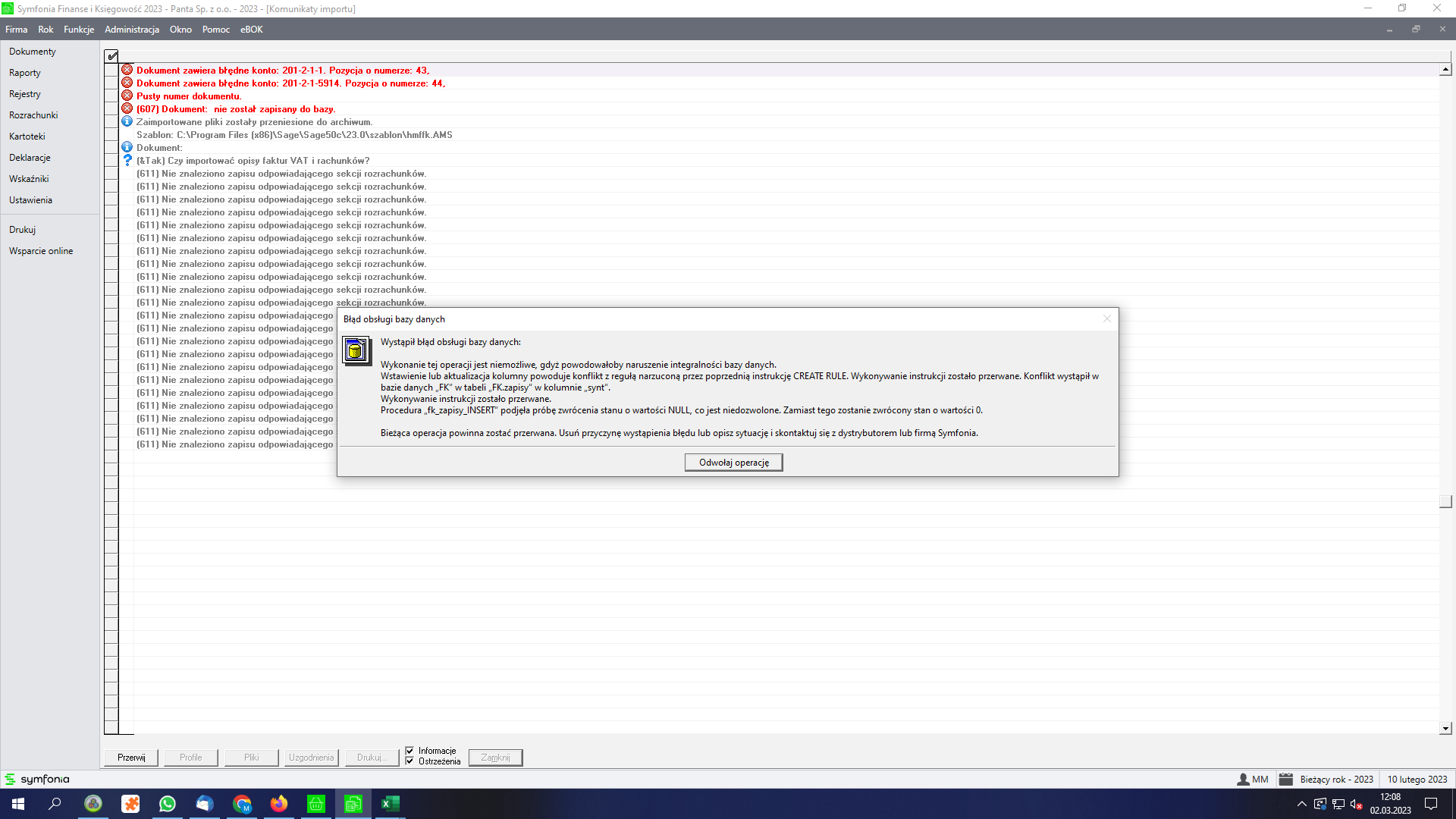 Witam. Od początku roku używamy najnowszego Handlu 23. Problem, który powstał dotyczy zapisu raportu kasowego w Finansach 23. Przy próbie wczytania pliku do programu pojawia się taki błąd: Jest jakiś sposób na naprawienie tego?