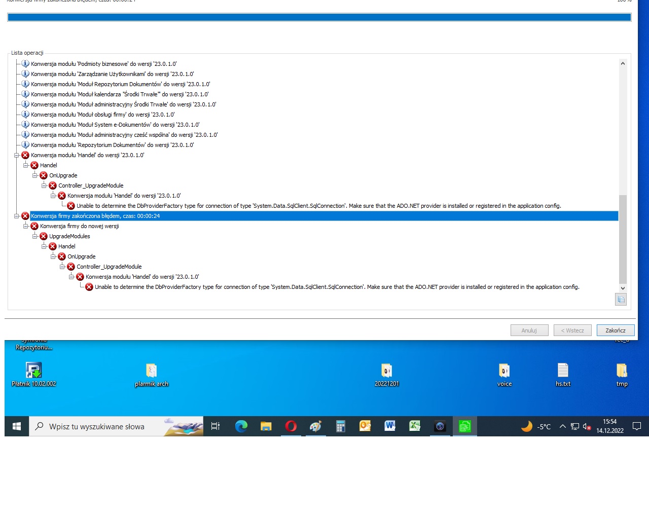 Mam taki błąd przy konwersji na stacji roboczej (załącznik). Symfonia pracuje na tym już tydzień ale się nie posunęli do przodu. Na serverze gdzie sa bazy jak zainstaluje program to konwertuje firmę poprawnie i otwiera. Ale taj skonwertowanej firmy ze stacji nie otworzę. Jakieś sugestie?