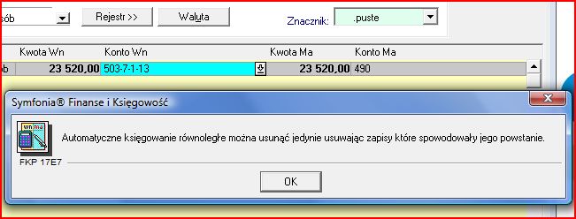 Jedyną prawdziwą rzeczą w ostatecznym dokumencie, który oczywiście jest bezwartościowy, jest to, że nie można usunąc księgowania równoległego bez usunięcia zapisu pierwotnego - tylko, że tego............... nie ma i nie widac :)